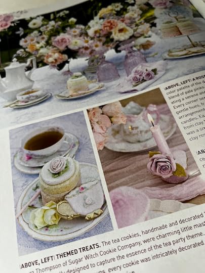 I always enjoy seeing detailed photos of what is served at a tea. I'm especially drawn to these little circular cakes at lower left, and that gilded teacup cookie was definitely an artisan touch.