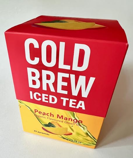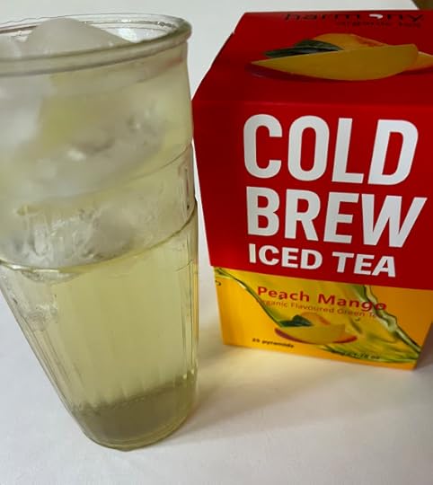Here's what the tea bags look like, and steeped in cold water for five minutes, the tea's flavor was a little weak, so I just let it continue to steep, then I got a nice peach and mango flavor.