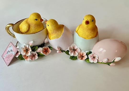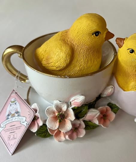 Also, I always check out the home decor, and I was surprised to see a cute teacup Easter decoration that I'd not seen in the dozen or more visits I've made to T.J. Maxx over the past couple of months. It was $9.99 originally, now marked down to $4.50. Yes, please!