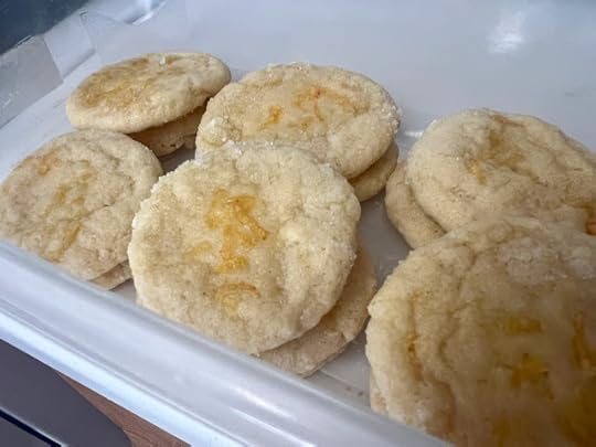 I have had a hankering for lemon cookies for a couple of weeks now, so yesterday after church, I whipped up the dough, grabbed the latest novel I've been reading, and sat and read while the dough chilled in the fridge before baking. It was a great way to spend a rainy Sunday afternoon, and … now I have extra cookies!