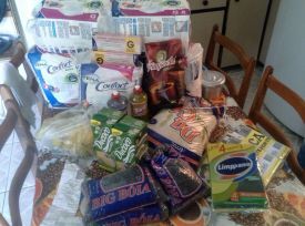 Things I just bought for Edgar with donations. Thanks to those who are helping!I’ve decided to invite the body of Christ to share in this ministry. We’re taking care of Edgar by feeding him, bathing him and changing his diapers. We’re extending the opportunity to you to contribute by helping us to buy his food, diapers, and other care items which his small income doesn’t completely cover. We also need a cheap regular wheelchair (slightly over $100) so we can take him to get his money from the government. A few people have already donated to us (unsolicited), and it has encouraged us tremendously.