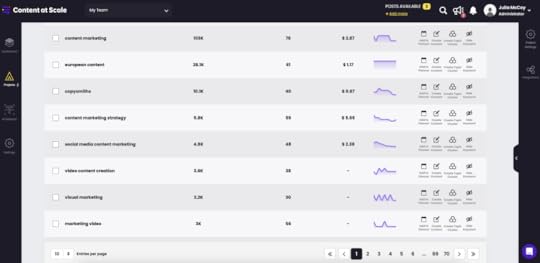 Here’s what comes up, for example, when you type in “content marketing” to Content at Scale’s keyword research feature (which, by the way, is an API connection to Mangools’ KWFinder – a tool I trust and love!).