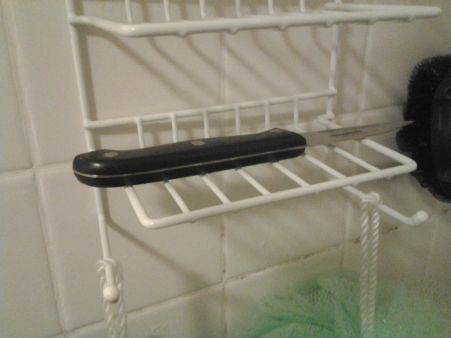 About 1:30 a.m., my wife went into the bathroom and found a knife under the showerhead. She had already said she didn't want either one of us to be alone with Celeste. I had, however, felt safe enough. Until the knife.