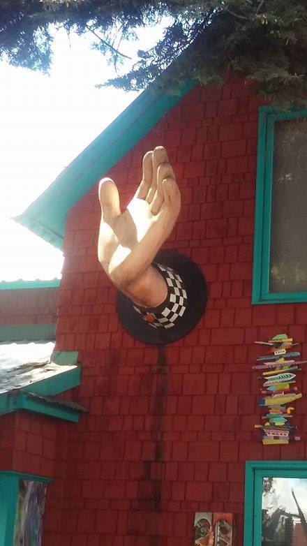 My new town of Ellensburg has a lot of cool places. The coolest is arguably Dick and Jane's Spot. Lots of recycled art creatively deployed in a tiny space! I thought I'd share some pics.