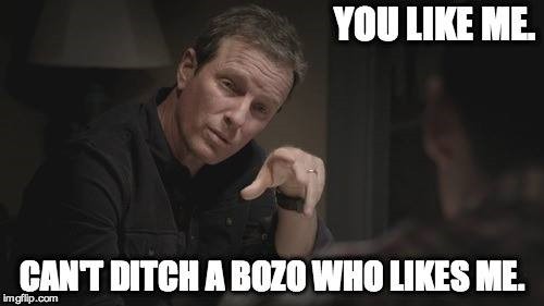 "You like me," John said loopily. "Can't ditch a bozo who likes me."