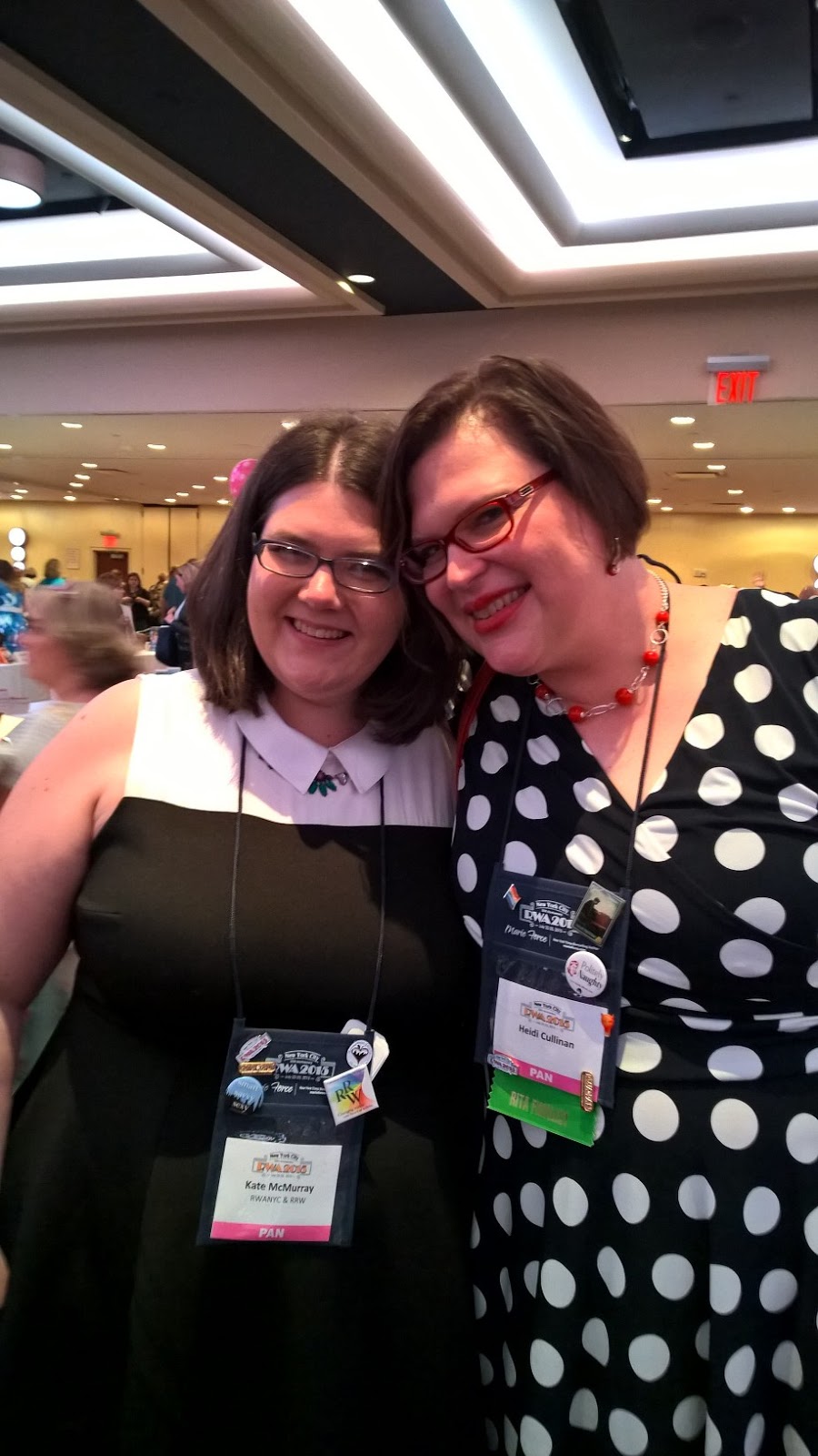 I'm freaked out because one of the things that I almost lost (but didn't-- thank you Mate!) was a little teeny pewter pin, that's just so lovely I can almost cry. It's my RITA pin, and it goes on my lanyard, and it says to everybody, "See this person you've never heard of, with the book that would get run over by a tractor trailer in most book pitches and then killed with fire? She's a RITA nominee!"