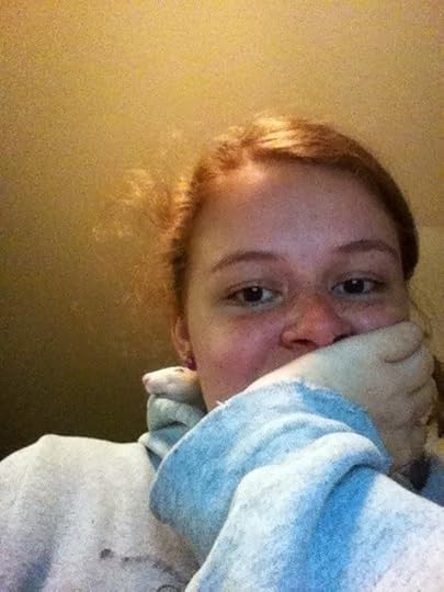 Well, her big showing this morning was (you guessed it) in the bathroom. I went to let her out, and Mate was like, "Really? She wants out?" See, usually, she's in the bathroom with me so long she leaves big puncture wounds in whatever nightgown or shirt I was wearing when I went in there. The other day, Squish just stood at my shoulder and walked her fingers over the tiny little holes, trying to figure out what they were. When I told her, she held her hand to her mouth and gasped, blue eyes big in classic Scottish Kibuki Theatre pose.