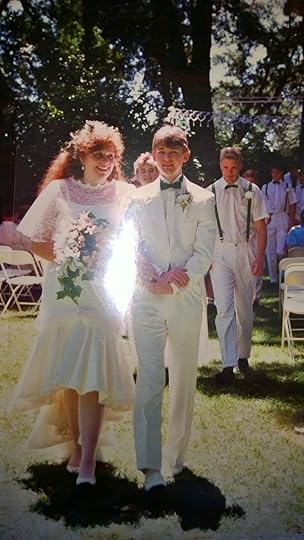 My dad walked me down the aisle, to Mate, who wore his mullet (!!!) back in a ponytail, and who insisted on wearing the full off-white tux with tails. He weighed about 140 lbs-- I think there was more tux than boy, but God, he was so pretty.