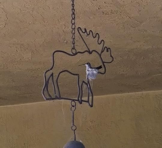 And I'm sort of reminded of MacBeth-- when tender-hearted old Duncan sees the birds at MacBeth's and says, "Look, the temple-haunting martlet is here! This bird only hangs out in good places!" Of course, Duncan was blind, and those birds were ravens, (according to MacBeth) and they were croaking his doom, but I'd like to think the my parents are nicer than MacBeth. Because they got themselves a hummingbird. Cause he thinks their place is cool.