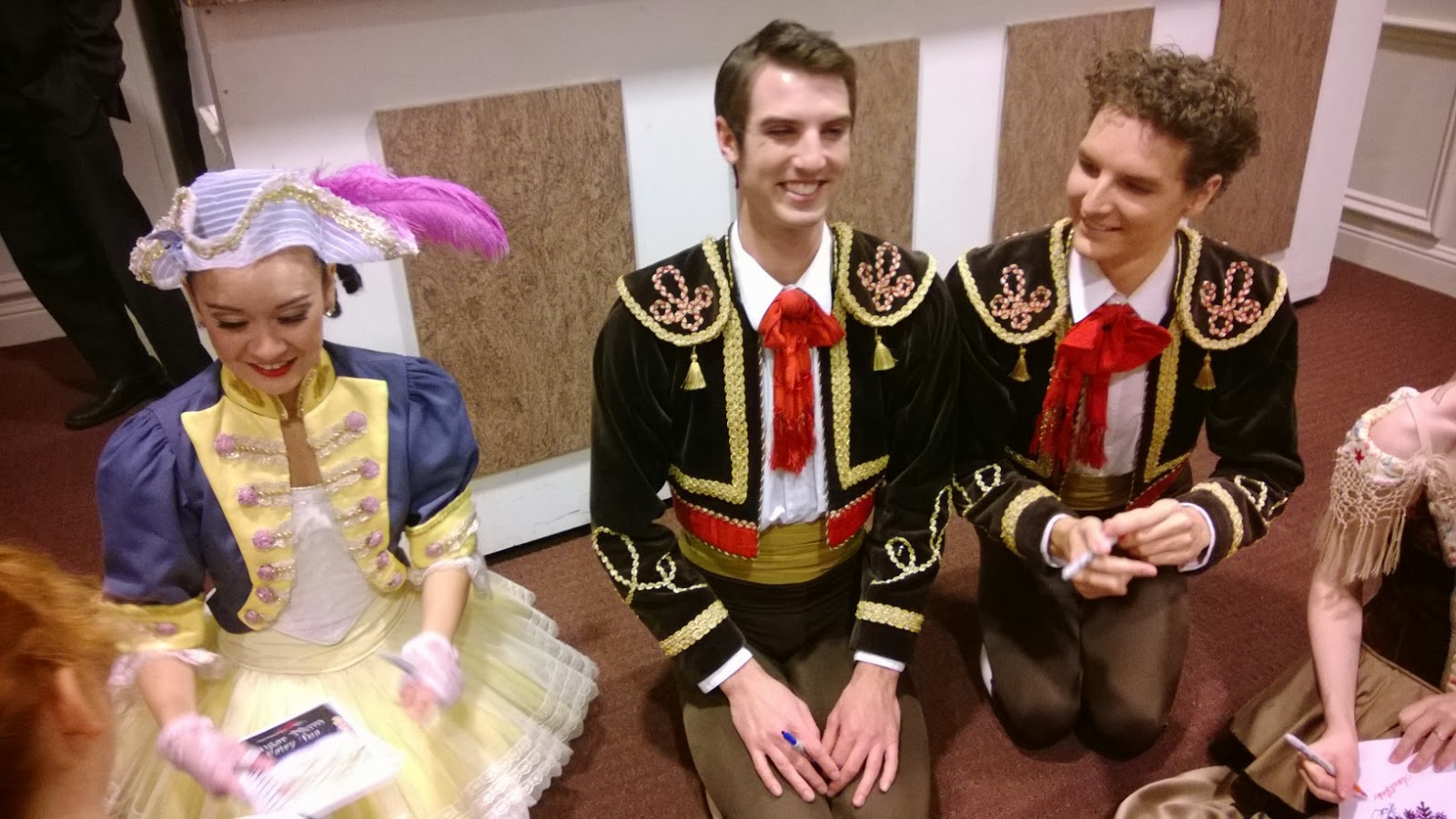Wow. I was pretty sure they'd love it, but I was unprepared for how excited they got at the tea, which happened afterwards. All of the dancers were there, in costumes, and the kids were given little "autograph books" to go get signed. Our kids wanted to collect every dancer, and I think they damned near did! Being served at the tea were cucumber sandwiches, curried chicken croissants, and petit fours! Nom. So tasty. And so much fun! The mice capered throughout the entire thing, and just as we were leaving, they incited a riot by running playfully from a knot of screaming children. (Yes, I swear they were playing-- they hid behind the Rat King, and there was much laughing.)