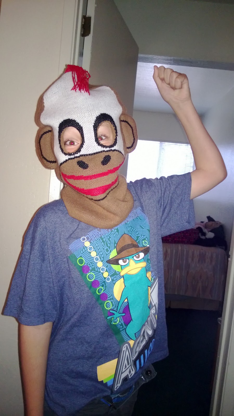 And Mate was... well, brilliant as always. He looked up things to do, and the first thing he picked was the gondola ride up the hill. GLORIOUS. Seriously-- so pretty. I can't even... just wonderful. We got up there, ate some totally decent food, and came back down so Mate and the kids could play miniature golf. Then we went to Sock City where I bought that terrifying Sock Monkey Serial Killer/Bank Robber mask that he wore for the rest of the weekend. *shudder* He promised to wake me up wearing it, and yes, he did.
