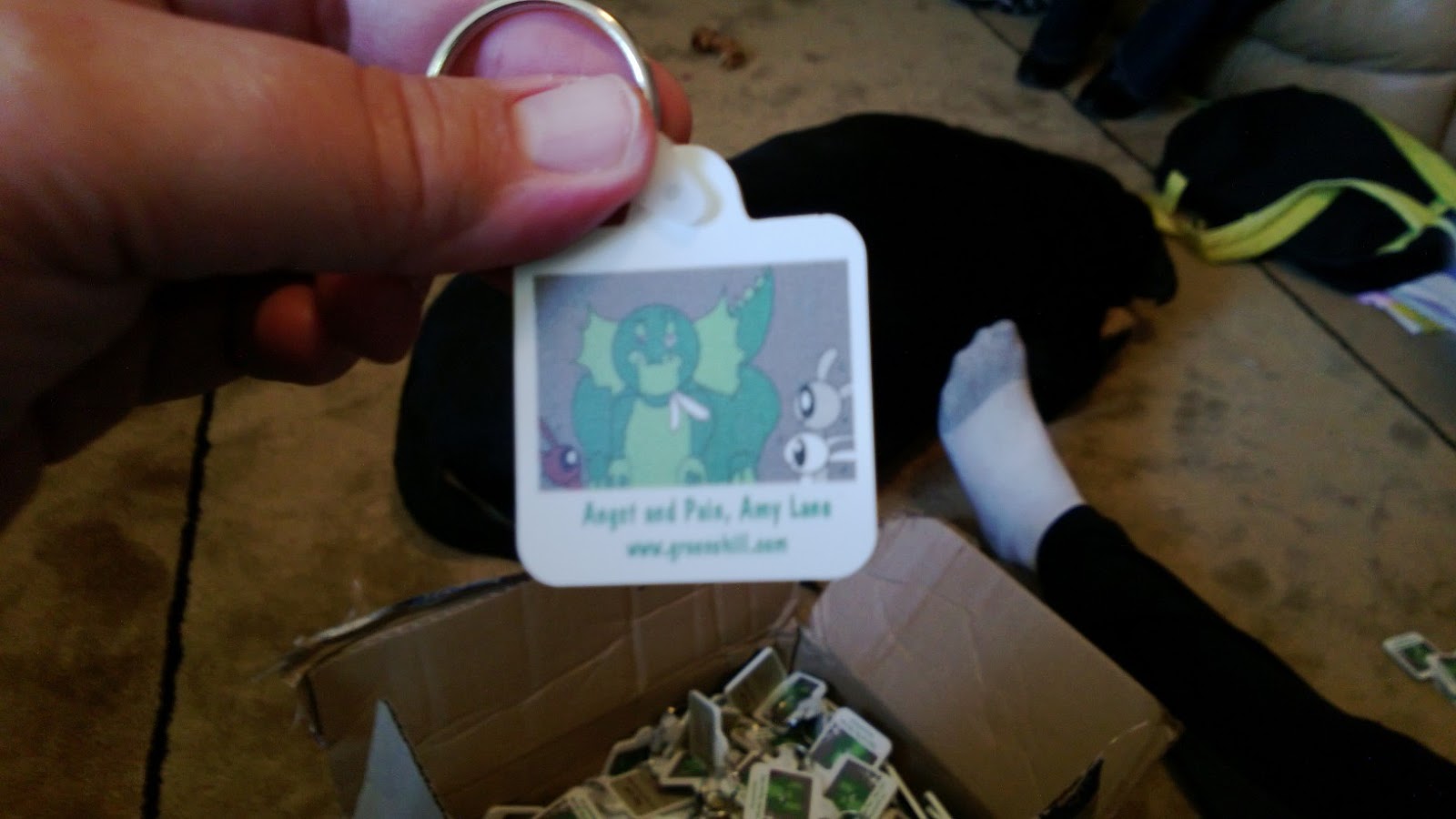 Oh yeah! And I'd forgotten until I loaded my pictures, but I got some new swag for the upcoming conferences-- I'm bringing about fifty of the key chains to Florida (and some new bookmarks for Under the Rushes, too!) and that's always fun.