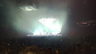 I LOVE rock stars. I love that they can look directly into a camera, sing something torchy and gut-felt, and every woman in the arena thinks about sex. And the guys don't worry that every woman in the arena is turned on, because odds are good the girl isn't going home with the lead singer of Muse, or the Killers, or even The E-Street Band-- she's going home with her husband or boyfriend or girlfriend or wife, and SOMEONE'S gonna get lucky! And the rock star? He's just in the moment. He IS the music. His entire being is that collection of notes and power and sound vibrations and electricity that make up a song and lightshow--he's TRANSCENDENT--and he pulls us up with him! It's holy, the way good music can raise a crowd into pure physical joy. It's like one of the sacramental bennies of being a human being.