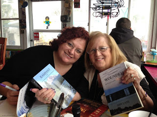 She and Stormy had the fortitude to spend the night in the Bird-Bates Hotel, and they did so just so we could meet. After a brief "Hi! OMG, does this place suck or what?" moment at night, we met the next day at the F.A. Cafe, and just talked. And yes, I signed every book I've ever put out.