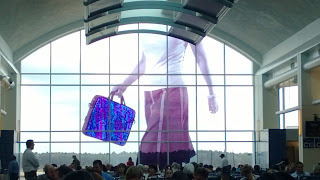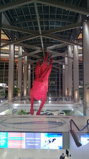 And then there was this. Now that I've been to a couple of airports, I'm sensing a theme in trying to dress them up again, make them look like high end fashion mall centers and not just some place to prop up your feet while eating a power bar. Anyway, the Jacksonville Airport, which was teeny tiny tiny, had a VERY cool art thing going on with the window-- I liked it anyway. And then I compared it to the one they've got going in the Sacramento airport, and I can't decide which one I like better--although, the Sacramento Jackrabbit really IS an odd mascot for an airport, until you realize that that's ALL that really lives out around the airport, for a couple of miles in any direction.