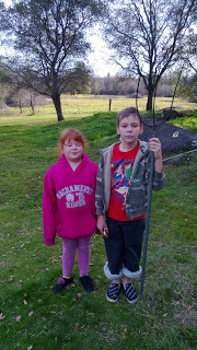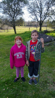 But when we got there, the kids had a great time cooking wieners (okay, sausages, but wieners is fun to say!) on the pitchforks and posing for these pictures. Notice how Squish is NOT suited for American Gothic, but Zoomboy is trying REALLY hard. Anyway, that was Saturday, and then I had my meltdown with my family, so instead of blogging about all this fun stuff, I got bogged down in that shit instead. I shouldn't do that. I REALLY NEED to remember the fun stuff.