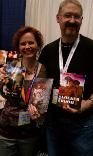 This is Andrew and Ariel-- they went to Book Expo of America for my publisher, Dreamspinner, this year, back in May. While they were there, a friend of mine from the Paranormal Romance Guild, another writer, Marianne Morea, saw my name, and said, "I know Amy!" and Andrew and Ariel said, "So do we!" and this picture was taken.