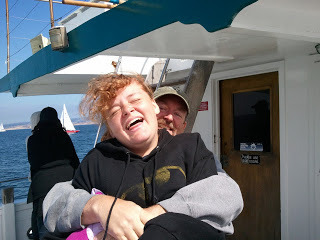 And went on a whale watching excursion (during which we saw NO whales--but did get a raincheck) and ate clam chowder in bread bowls and ran along the beach (where we saw dolphins offshore. Go figure.)