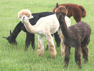 Okay-- my friend is on the phone, talking about getting her alpaca fleece sheared and processed, and then finding a spinner to buy it, and seriously-- it's like she's seducing me with fresh, quality critter fur. I WANT TO SPIN THAT! (Okay-- not these critters-- these critters were found on Bing images, and while charming, they do not have the personal appeal of a personal alpaca and it's body hair. Knitters, rally to this-- you know what I'm talking about!)Anyway, my house is a crapfestive craptastic crapgasm--and buying ONE MORE THING and investing in ONE MORE HOBBY is completely out of the question. But that only makes all her seductive talk about fleece and combining it with Romney and roving that much more of a turn on, yanno?