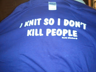 But the T-shirt pretty much insured that nobody would die yesterday--I was too busy laughing, and working on my socks for the Super Sock Man story. All good!