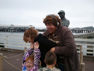 And we got to see Zoomboy in his natural element--where the sea and the sky contend with each other, to see whose roar is the loudest. Even Zoomboy was ready to go home at the end. (He astounded us all on the way home, btw. We got stuck in traffic, and he had to pee in a bottle. Besides making the whole car giggle terribly, he filled a 16 oz water bottle--Mate and I have now sworn NEVER to ask him "Can you hold it?" again. Obviously he CAN hold it--and if the boy's gotta go, he damned well has to go!) Everybody had pink cheeks, sore from laughing at the end of three days.