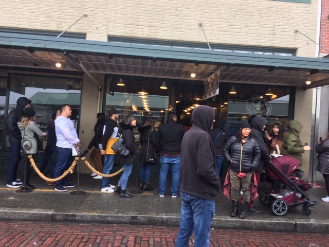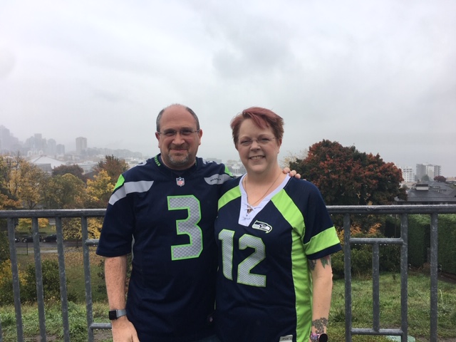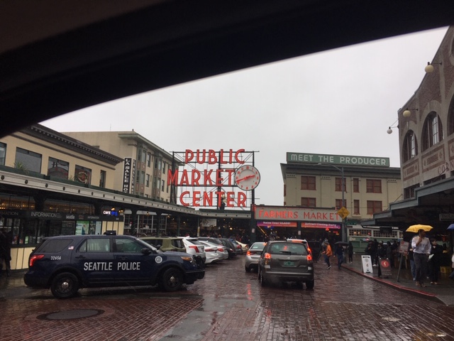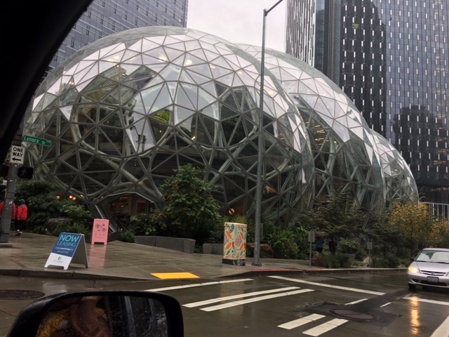 A long-time reader and Seattle resident--Tori--and her husband, Dave-- took me on a tour of Seattle. Now remember, I go to a lot of places and DON'T always get to look around, so this was pretty wonderful. They knew their way around the city--I saw everything. I saw the Mo-Pop museum, the Amazon terrariums, the view from Queen Anne Hill, where the Mariners play, and the Seahawks (I got to hear them too--they were having a game that day and that city on game day--WOW!), and we got to see people throw fish and stand in line at the original Starbucks.