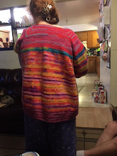 Got halfway done on the sleeve to the Amy-NO! sweater.