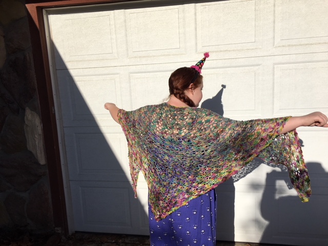 When I told her that her shadow in the picture with the shawl looks like a unicorn, she laughed. When she read the John Oliver book, Marlon Bundo (the better bunny book!) she thought it was sweet--and she's grown up with her father and I watching politics and she agrees that the stink bug is VERY STINKY indeed.