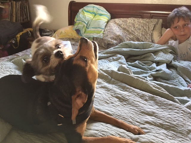 What we didn't plan for was the morning before Homecoming, Mate knocked on the kitchen door with stuff on his hands, and ZoomBoy went TEAR-ASSING THROUGH THE KITCHEN, skidded his foot on a mat on the tile, and landed on his ass.