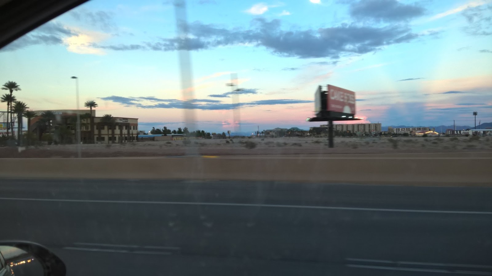 #4--Some speculation as to an empty strip of land behind a sad little tourist attraction whereupon we think the lazy mobsters might stow their dead bodies.#5-the sunset over Vegas.