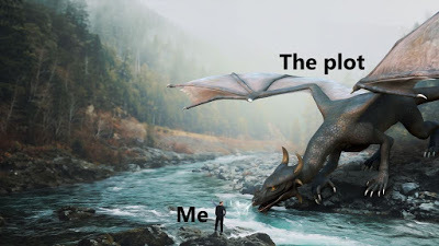 After this, comes a giant lake: First Draft Lake. This is where I am at the moment, and where I will be for the next few months! And indeed, here be monsters. Some days it's all plain sailing through the lake - scenes come together, plot lines zing and all is right with the world.