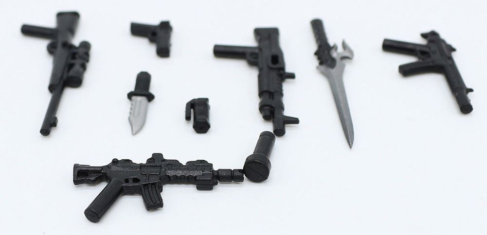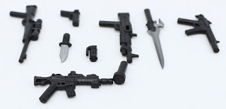 Anyway, for a variety of reasons, but mostly just because I like it, I've bought the female version. She too comes with some spare hands (and feet) and a selection of accessories. Her accessories lie more in the guns, knives, daggers, and more guns area than the laptop, book and pen section of Hero's box of tricks.