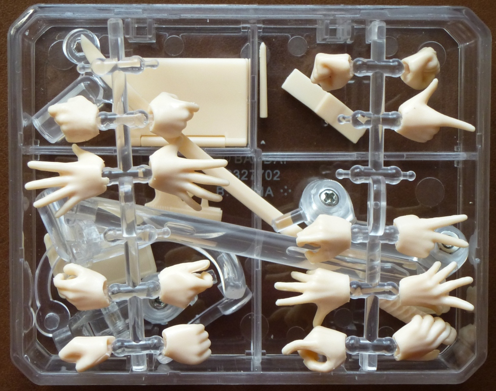 He also has a collection of different hands for holding the different objects and for pointing/gesticulating. These are a) a bit fiddly to attach and detach and b) make for a slightly gruesome looking box.