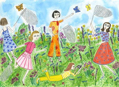 The ladies of the Charleston Butterfly Guild practice their stalking techniques.12x16" watercolor on paper