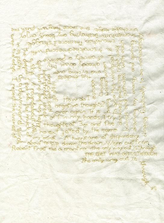 How do I escape this endless loop of negative thoughts? Circling and cycling over and over and over again. It is being kicked when I’m already down. My bootstraps break off in my hands. I try to give this whirlpool of anxiety a positive spin but no one has happy thoughts at 3 a.m. and the darkness pulls me right back in. A scratched record with a skip. A roundabout without exit jolted by the same bumps and potholes with each circulation. The more I struggle, the deeper I sink into the muck of my mind. A hurricane of despondency draining my energy and gaining momentum. Destroying any beauty or joy caught in its path. On a downward spiral, about to slip down the drain. Worn out from clinging frantically to an increasingly unreliable ledge. One more thing will push me over the edge. I repeat the words of Robert Frost like a mantra -- the only way out is through THE ONLY WAY OUT IS THROUGH the only way out is through.