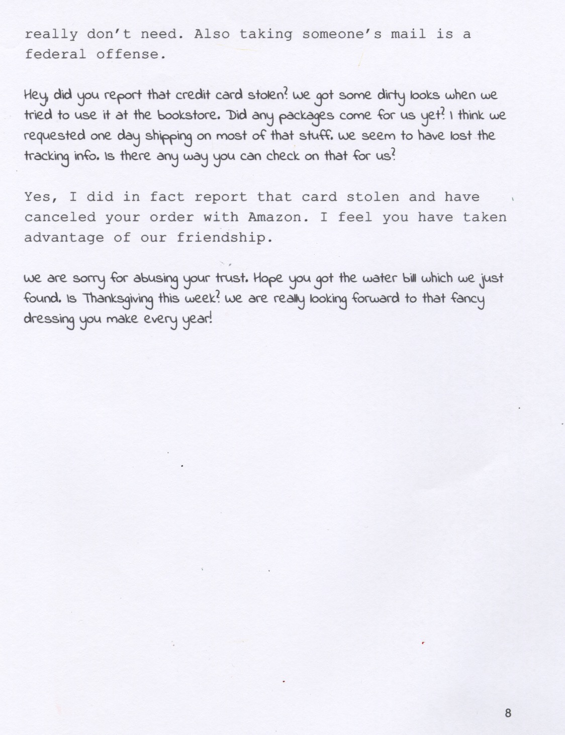 Correspondence with raccoons - continued.