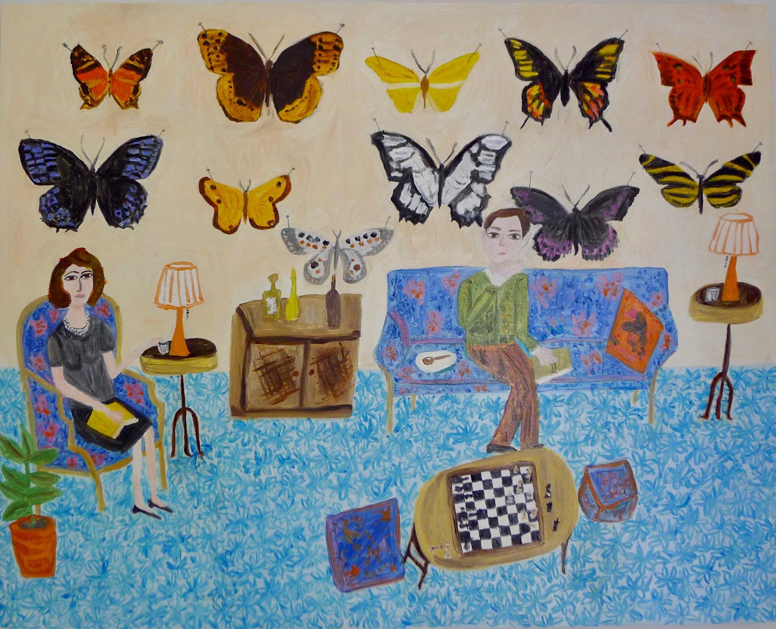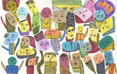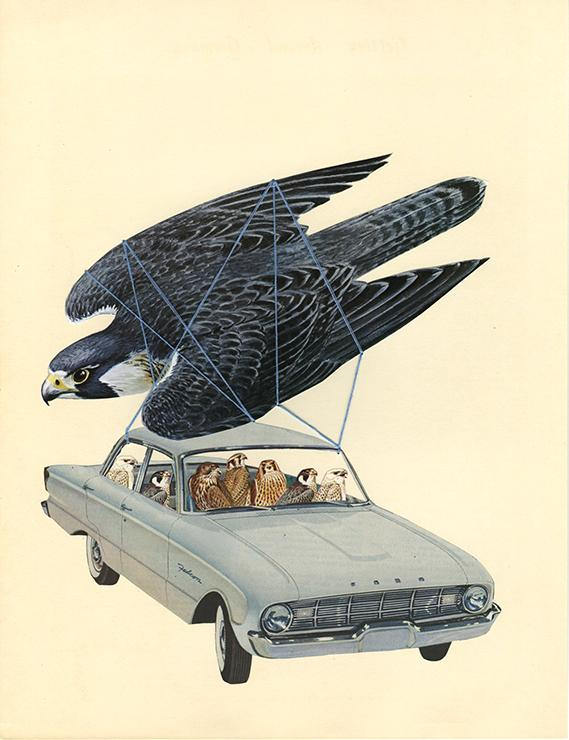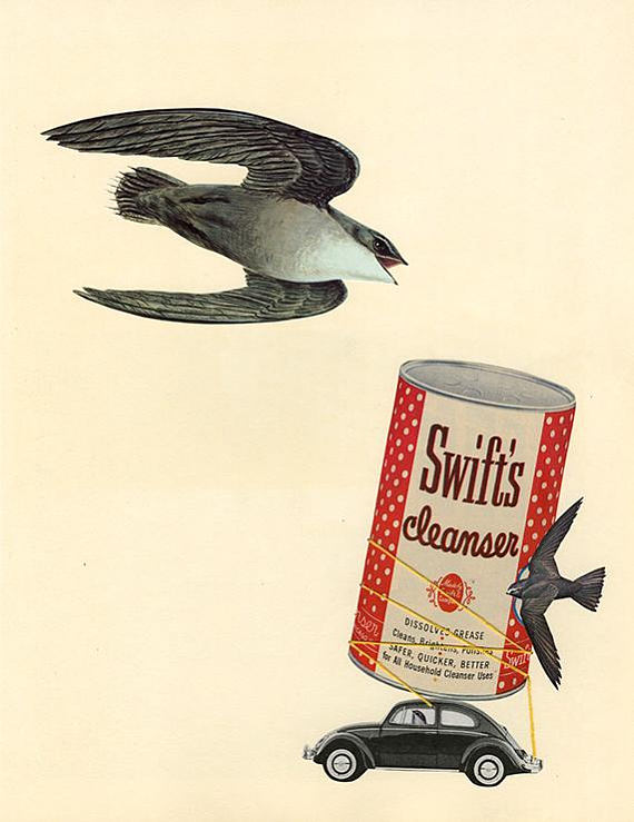 Artie was a myna bird with a major sound.collage on paper with stitching