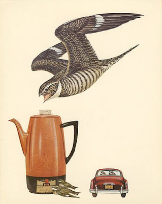 I saw my first ever nighthawks a week or two ago while walking the dogsearly evening with my friend, Ann ---we watched a flock of them (at the time we didn't know what they were) swooping and churning above us in the dusky light - obviously catching bugs. The markings under their wings were so distinctive it only took a "real" birder seconds to tell me what they were when I described them. We feel so lucky to have seen them! The same week, the painting Nighthawks by Edward Hopper came up in my reading - what an odd coincidence.