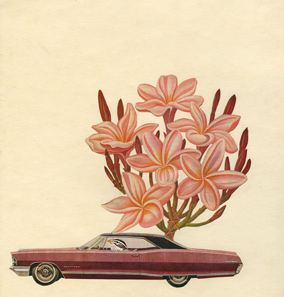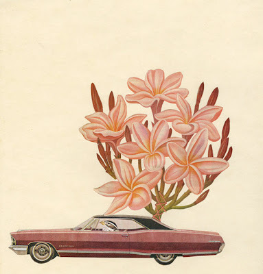 Rambling Rose.collage on paper with stitching