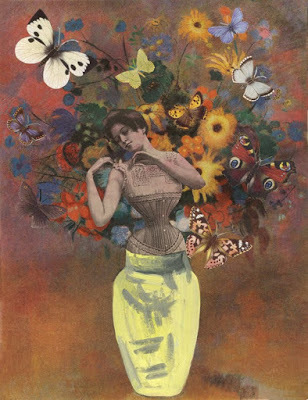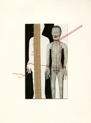 I decided to try and create something today with the first handful of materials I picked up and could reach from my table. Pins and embroidery thread have been on the window sill for as long as I can remember. Doll book found at library sale a few months ago.