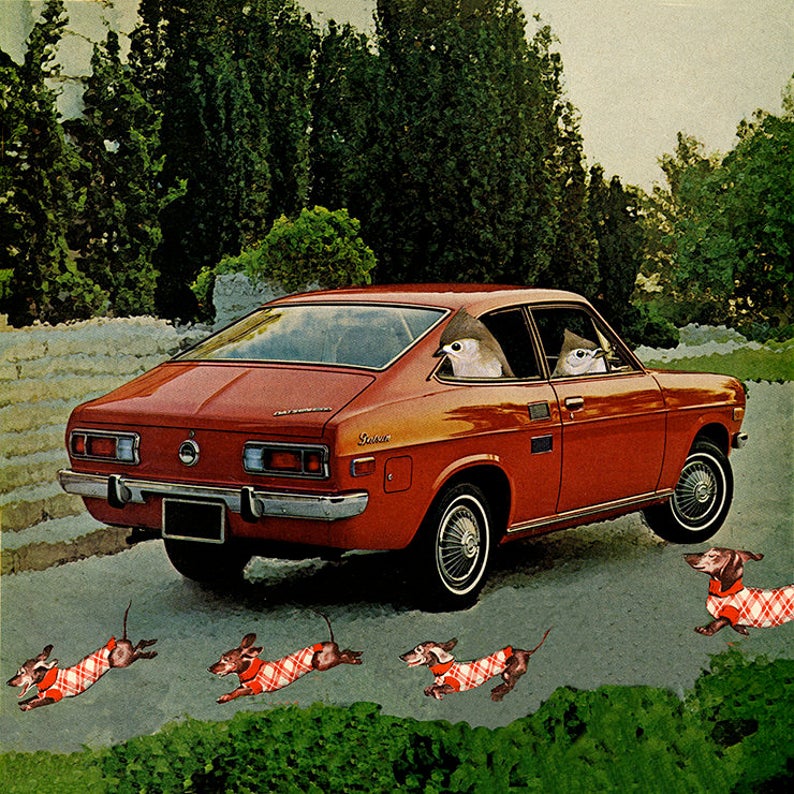 As they departed in their Datsun, they were delighted tosee some dachshunds dashing down the drive.collage prints available
