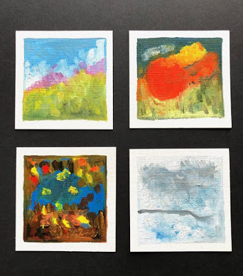 spring, summer, fall and wintereach are 3"x3" oil paint on linen finish paper