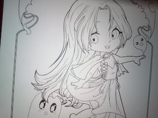 All the pages are black and white and feature 1-3 cute characters ready for their Halloween debuts. There is even a familiar trio tucked into the pages but you know, my readers, you have to go get the coloring book to find out who. I am not going to spoil it!