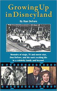 The book’s title, Growing Up in Disneyland is both a metaphor for my life in a celebrity family but is also to be taken literal as my Dad was the only person to ever own a concession in Disneyland bearing the name of a living person, “Don DeFore’s Silver Banjo” barbecue restaurant in Frontierland from 1957 to 1962. Dad was friends with Walt Disney so even before being offered to have his own restaurant, our entire family was in Disneyland’s opening day parade July 17, 1955, the photo of which is on the cover of the book.
