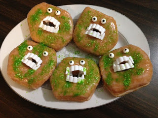 2. I squished some vampire fangs into the donut holes to make mouths.