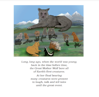 This is such a beautiful children's book. It is a mythical tale that tells how all creatures came into being and in particular the first woman on Earth. All the creatures are connected by the Great Mother Wolf who birthed them all, but all found their own way.