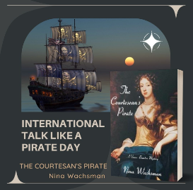 Avast ye mateys! Grab yer eye patch and parrot, because Nina Wachsman's new book, THE COURTESAN’S PIRATE, is here to give ye a pirate adventure like no other!