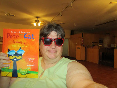 In this book, Pete the Cat is not the only central character but so is my grand-daughter. She "gives" one of the characters in the book a pair of cool blue sunglasses. who in turn gives them to Pete the Cat. These sunglasses make every character in the book feel good and happy. I smiled as each character was happy.