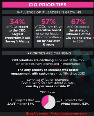 These statistics not only point to the growing influence of the CIO in a company but also that they have more time for top/bottom-line improvement and innovation.