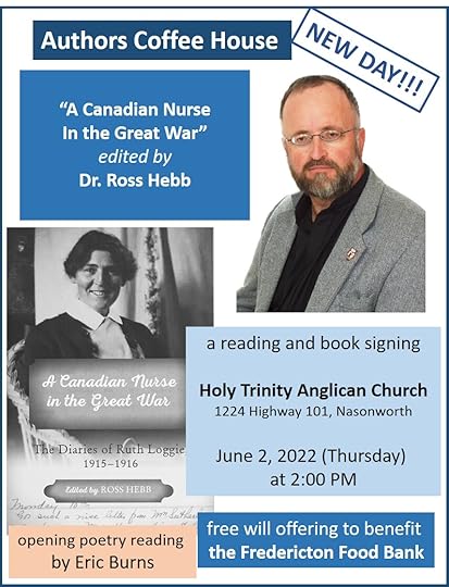 The Authors Coffee House has been rescheduled. The reading and book signing by Dr. Ross Hebb will now be held on June 2, 2022 at 2:00 (a Thursday). Hope to see you there!!!